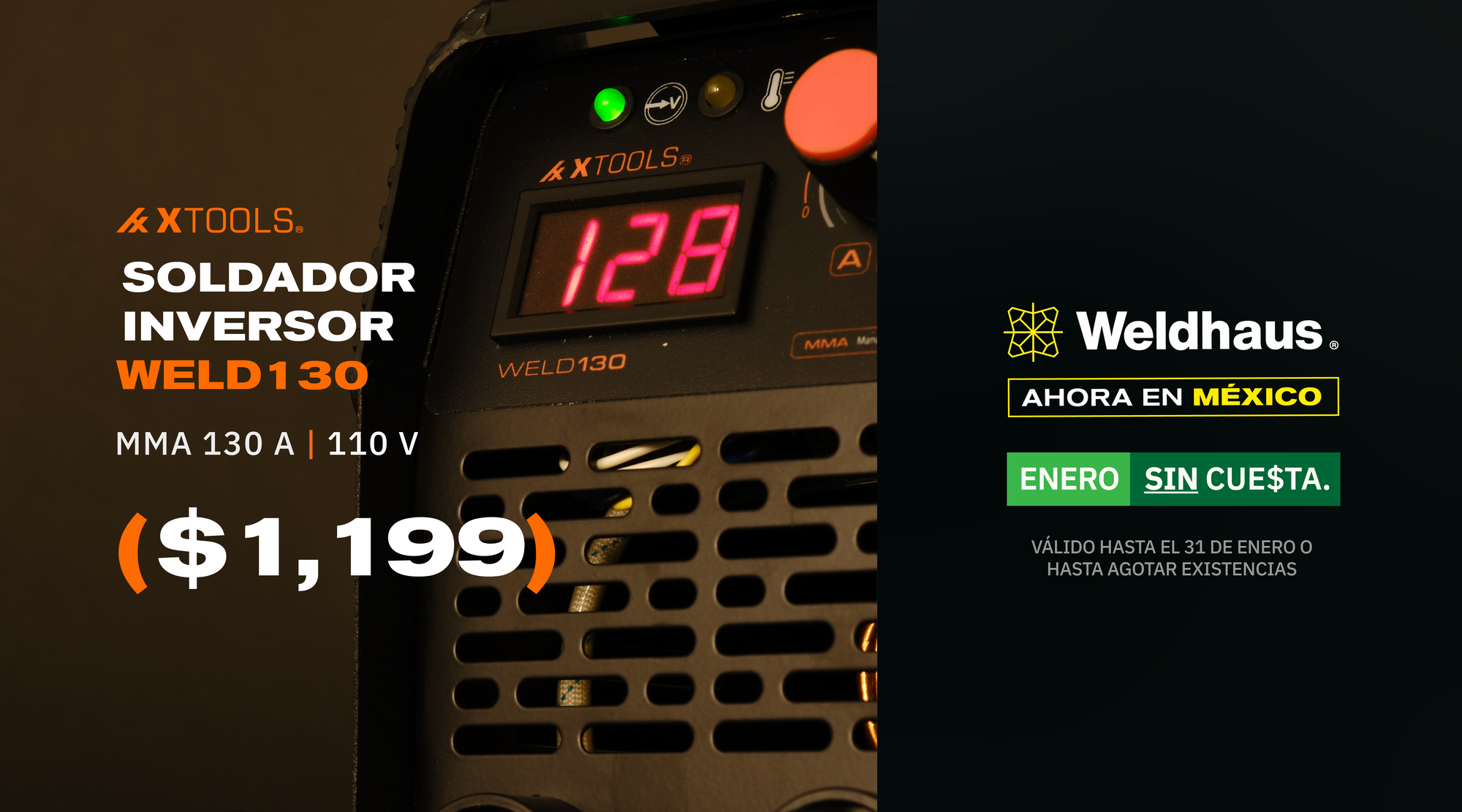 Ver todos los detallesEl soldador inversor WELD130 es un equipo ligero diseñado para soldadura con electrodo revestido (MMA). Su tecnología inversora garantiza un rendim...